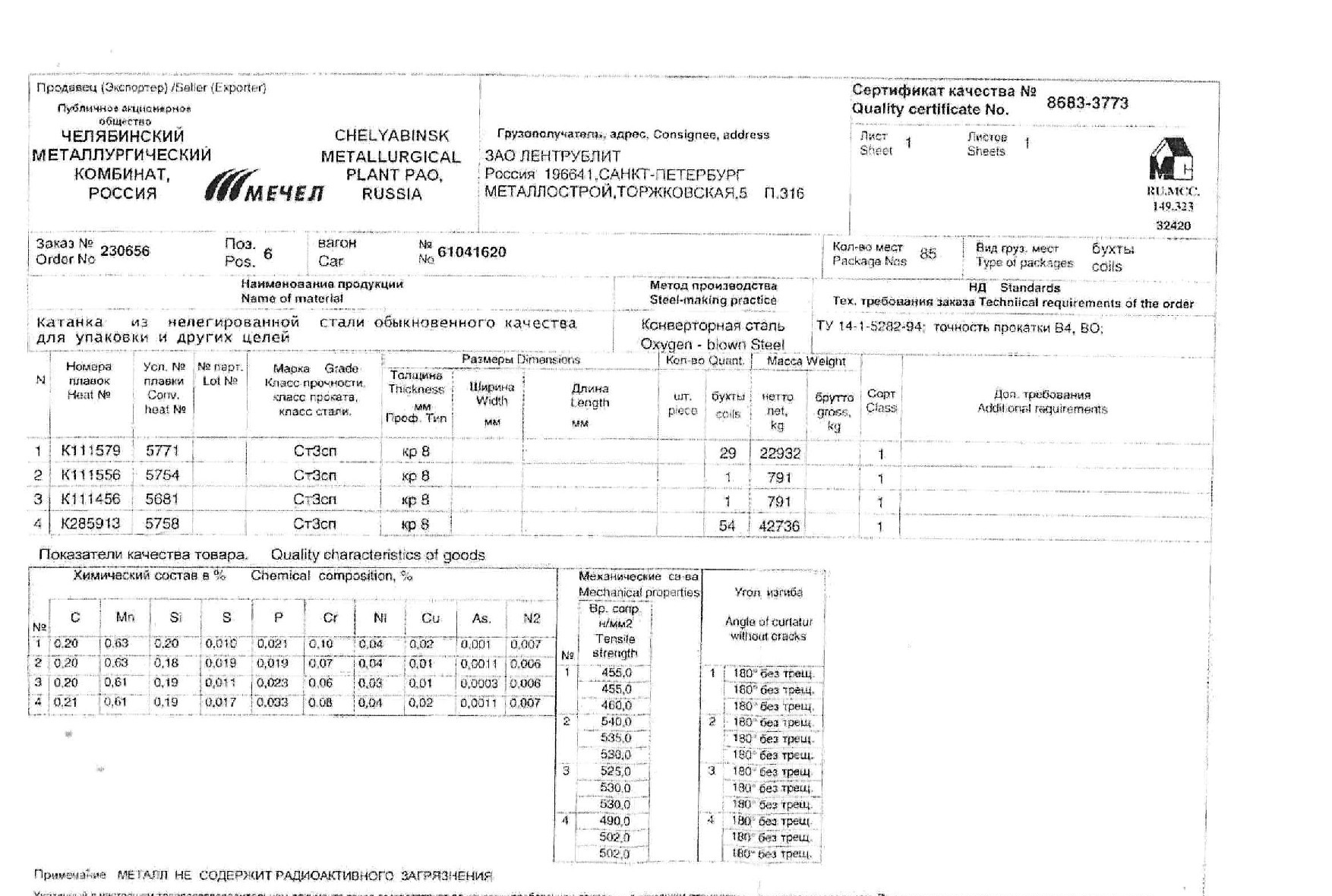 Поставка металлопроката выполнена безупречно: продукция высокого качества, без дефектов, полностью отвечает заявленным техническим условиям.